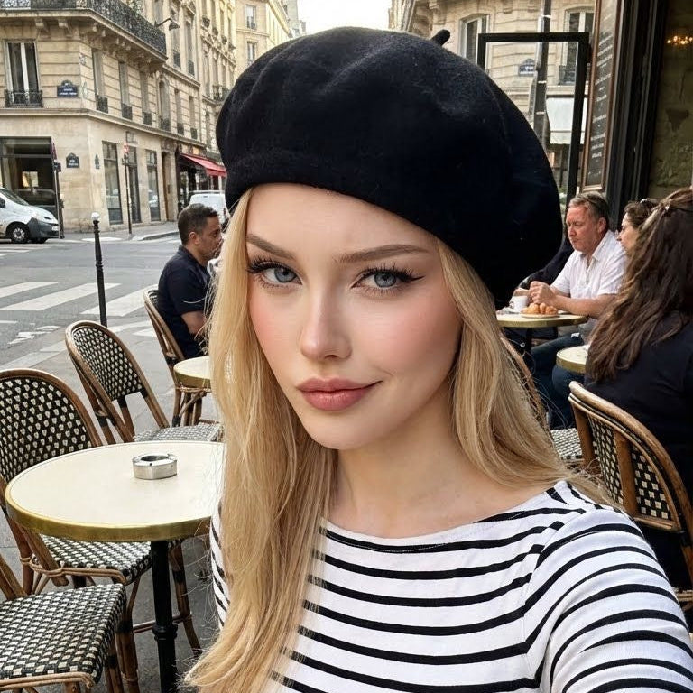 Boina francesa confeccionada en fieltro de lana de alta calidad, ideal para moldear según tu estilo personal. Su versatilidad permite ajustar la forma a tu gusto.